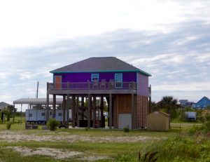 The half mile difference from end to end of the bridge was deafeningly quiet. Surfside Beach looked deserted, so we had the Blue Water Highway all to ourselves. Vacation homes of all sizes